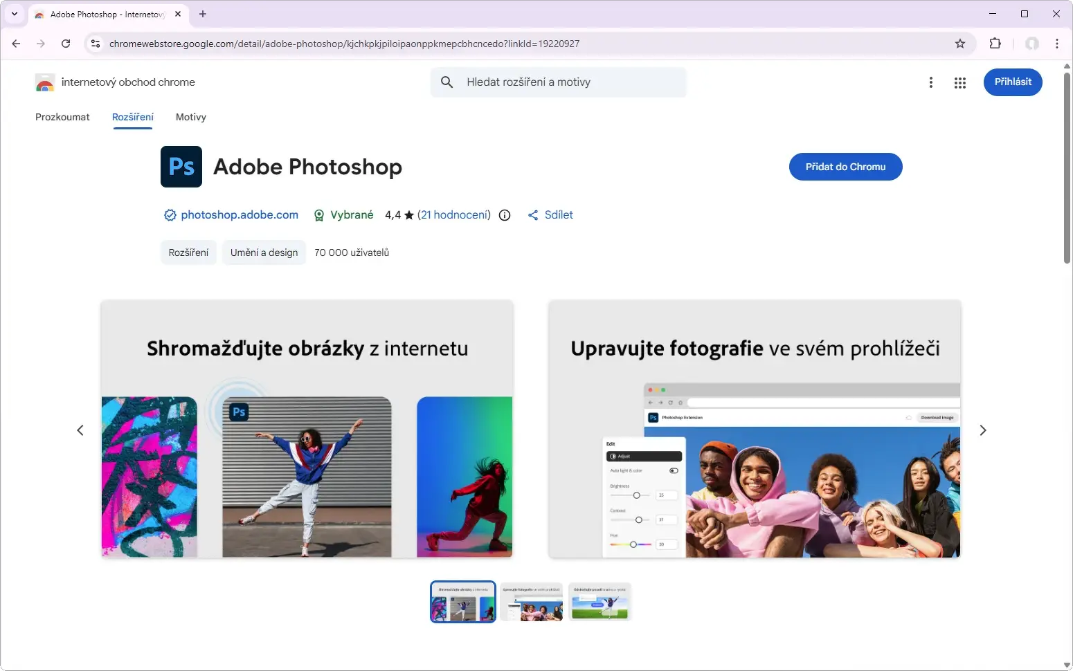 افزونه Photoshop را از فروشگاه Chrome نصب کنند