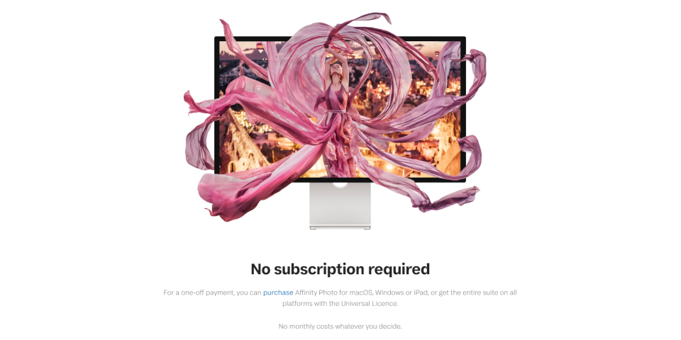 در صفحهی اصلی سایت Affinity فقط یک جملهی مبهم دیده میشه: